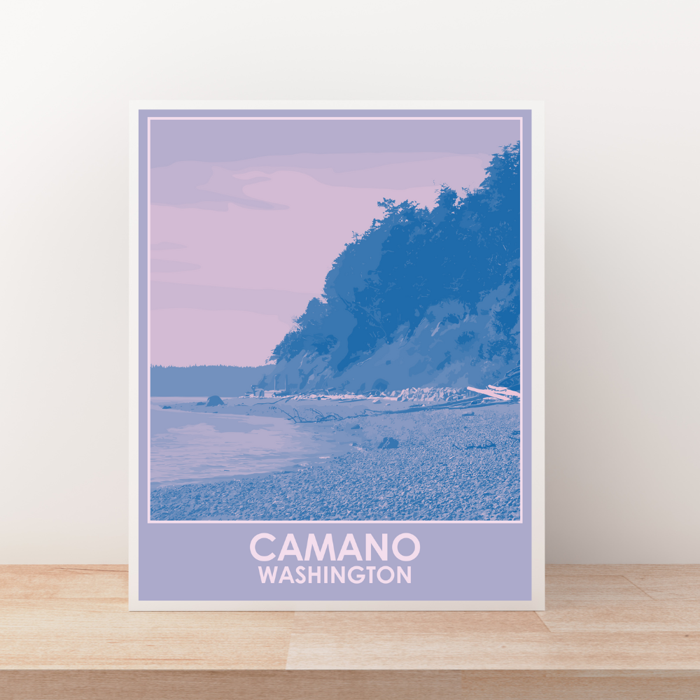 Whether you’re a local or just love the peaceful beauty of the Pacific Northwest, this print captures the serene charm of Camano Island—where lush forests meet the sea.