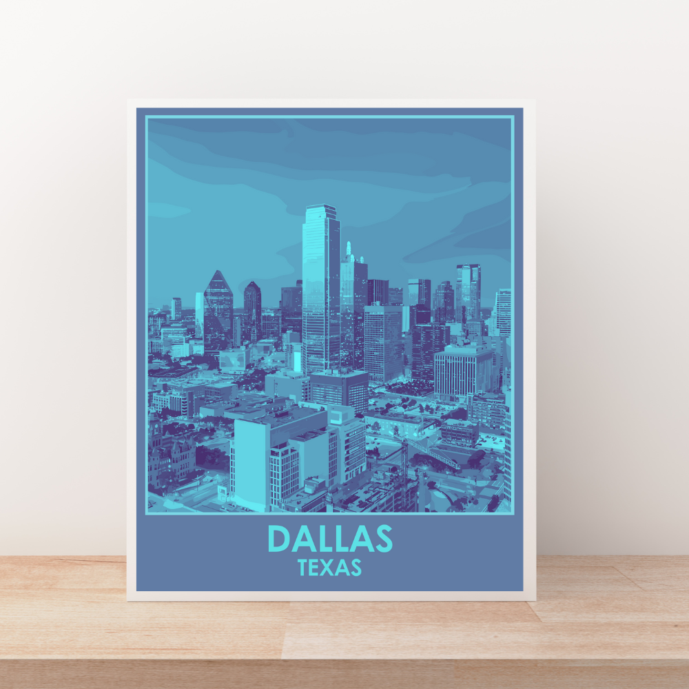 Dallas blends modern sophistication with Texas pride, creating a skyline as bold as the city itself. This print captures the spirit of the Big D, bringing its energy and charm into your space.