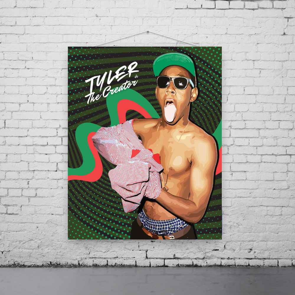 Celebrate the vibrant energy and eclectic style of Tyler the Creator with this art print, part of our exclusive Artist Series collection.